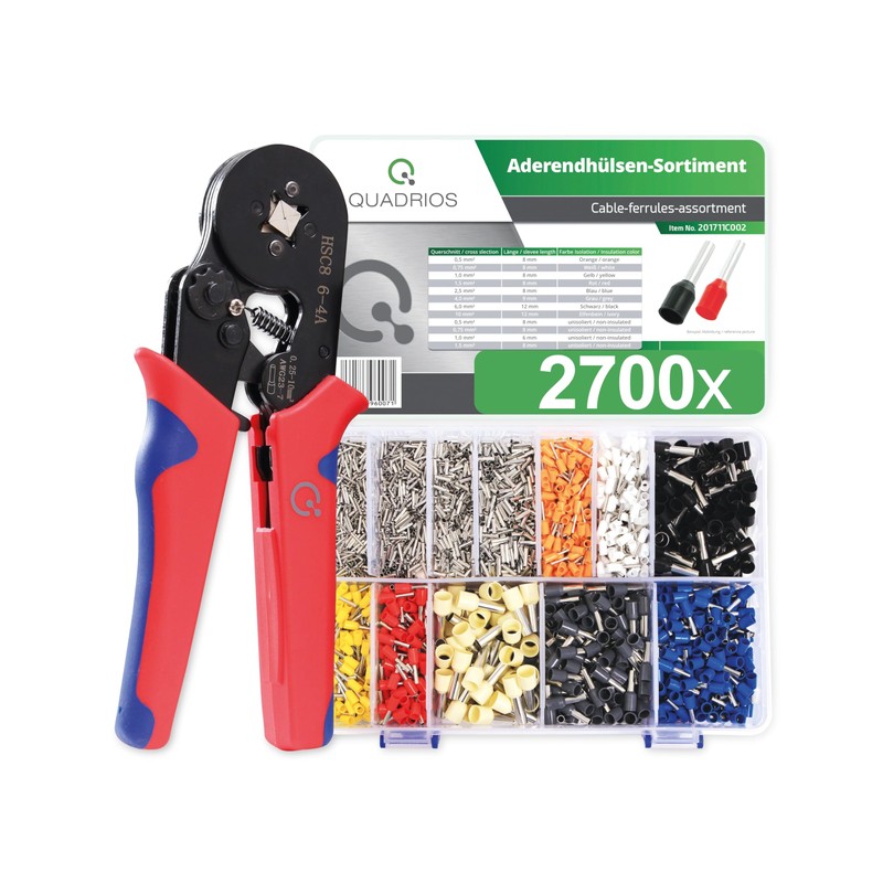 QUADRIOS Self-Adjusting Automatic Crimping Pliers with Insulated/Uninsulated Ferrules Set