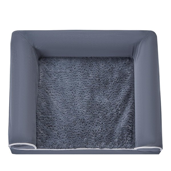 High-density egg-crate foam helps distribute weight evenly and provides the perfect amount of pressure relief and joint support. The cushioned bolster shape is deeply filled to support your pet’s head and neck for a more restful sleep. The egg sponge is soft and elastic, can support the dog's joints and muscles evenly, especially suitable for older dogs with anxiety and large dogs with arthritis. The classic padded dog cushion offers high loft orthopedic padding as well as a super cozy nesting for dogs and cats.