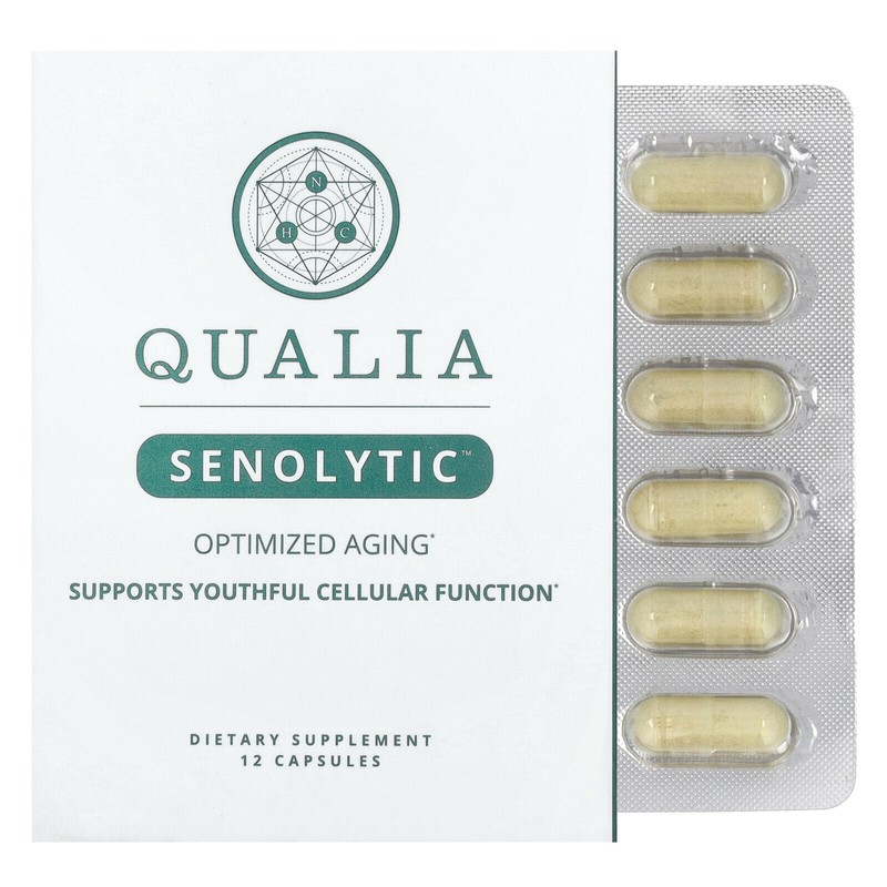 Optimized Aging Supports Youthful Cellular Function Dietary Supplement The Science Behind Qualia Senolytic Qualia Senolytic represents the culmination of years of research into the biological mechanisms of aging. This two-day rejuvenation regimen may hold the key to unlocking cellular health and revitalizing aging tissues throughout the body. Understanding Senescence Cellular senescence is one of the Hallmarks of Aging. It is the process by which cells permanently stop dividing but do not die off. These senescent cells linger inside the body and accumulate over time, affecting the healthy function of tissues and organs as we age. Senolytics Explained Senolytics are at the leading edge of anti-aging research. The word "senolytic" is derived from the Latin words senex (=old) and lytic (=destroying). A senolytic is a substance designed to destroy senescent cells, making "room" in tissues for more youthful cells-promoting whole-body rejuvenation. Senescent cells accumulate in multiple tissues with advancing age.SUGGESTED USE:
