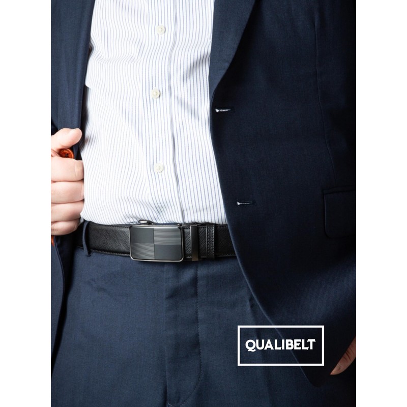 QUALIBELT Big and Tall Ratchet Belt Men, Ideal Father's Day Gift, Genuine Leather Slide Belt, Plus Size Trim-to-Fit, Chessboard/Black, Waist 50"-60" Adjustable