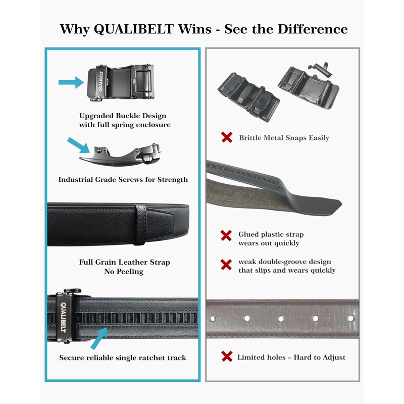 - 2️⃣【Single-Groove Track】Our automatic belt uses a durable ABS plastic track with a single-groove design that locks the buckle firmly in place. The flexible yet sturdy construction ensures a secure fit that won’t loosen over time.