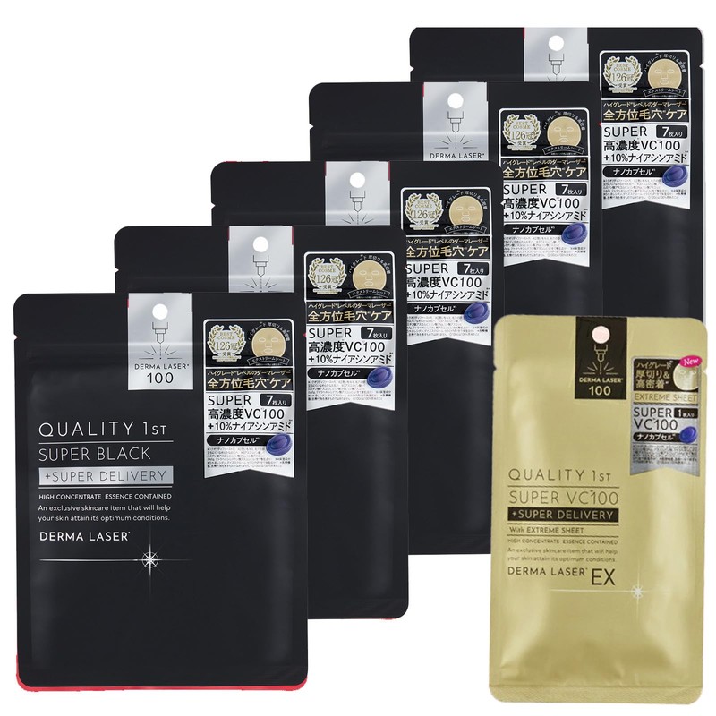クオリティファースト(Quality 1st) ダーマレーザー スーパーブラック マスク (3個セット) 黒ずみ 毛穴ケア (ナイアシンアミド / 4種のビタミンC) 日本製 シートマスク/EXスーパーVC 1枚付き