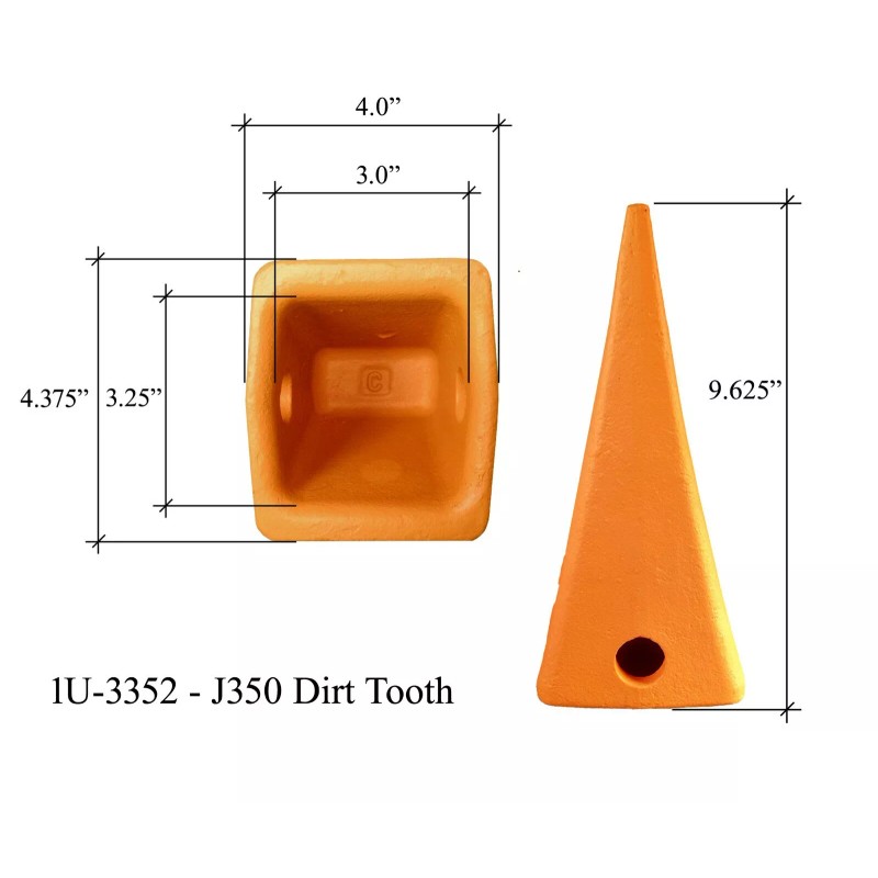 Quality Aftermarket 1 Caterpillar J350 Style Bucket Dirt Tooth w Pin & Retainer- 1U-3352