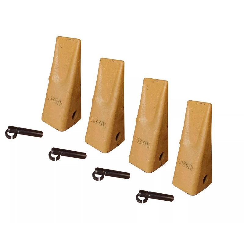 Caterpillar J200 style Backhoe Bucket teeth with round-side hole using pin and retainers.