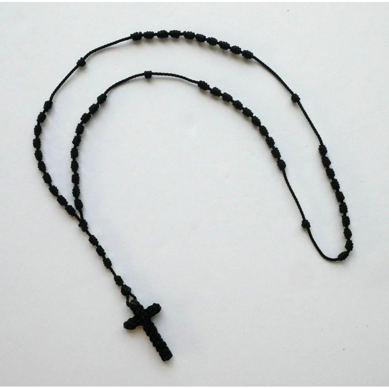 Quality Black Knotted Cord ROSARY with Pouch Included