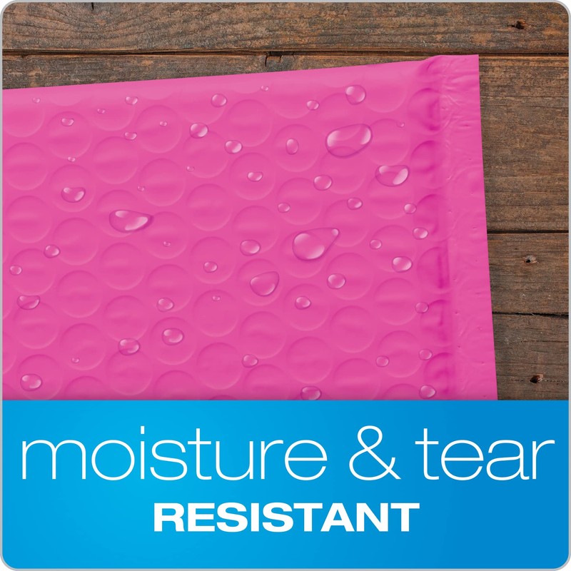 Quality Park Bubble Mailers, 8.5 x 11 Shipping Envelopes, Water Resistant Pink Poly Padded Envelopes, Redi-Strip Peel Off Closure, 25/Box