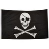 3x5ft Polyester Pirate (Regular) Flag has header tape and 2 metal grommets. Flag is dye-sublimated with beautiful bold colors. Printed on one side all the way through the fabric, Double-stitched around all edges with 4 rows of stitching on fly edge.