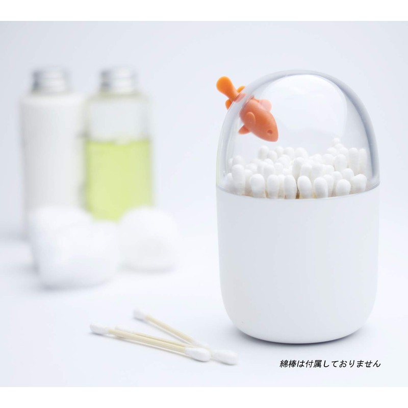 QUALY Cotton Bud Holder Clown, White Container, Transparent lid, Fish Orange, ca. Ø 7 x 11 cm