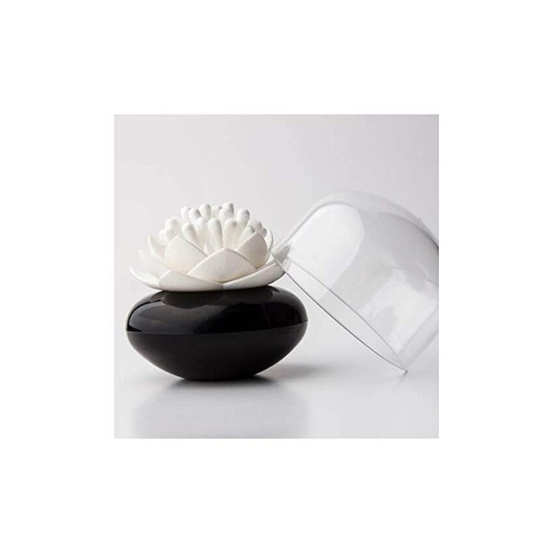Qualy Wattestäbchen Aufbewahrung, Kunststoff, Schwarz, Ø 80 x 83 mm