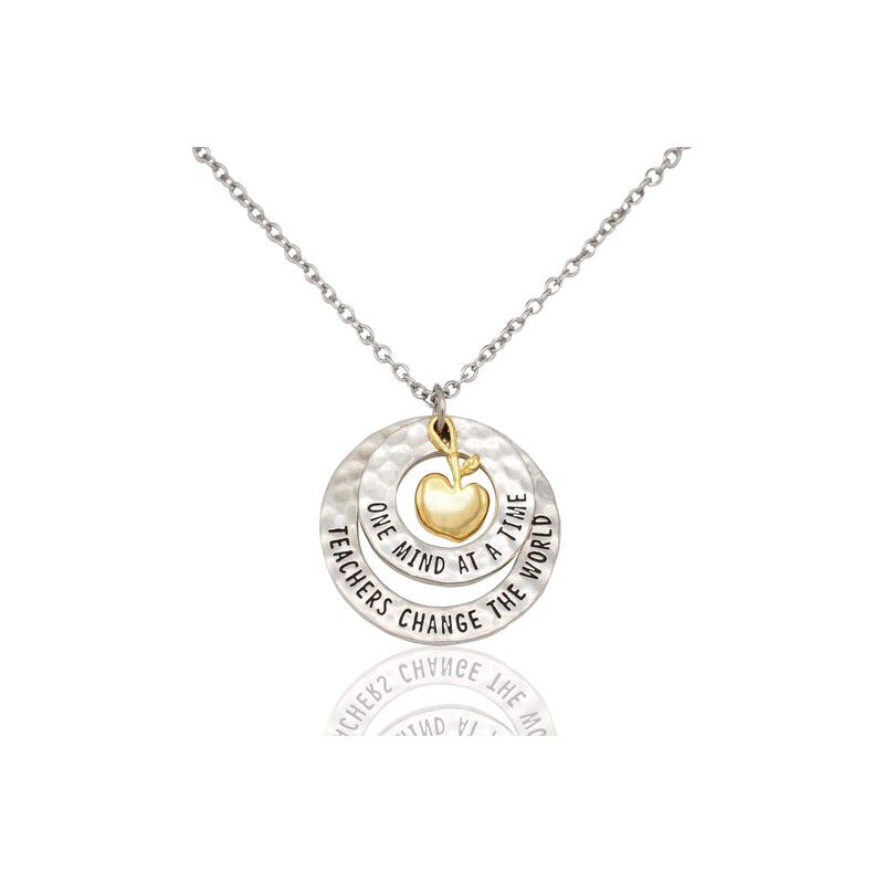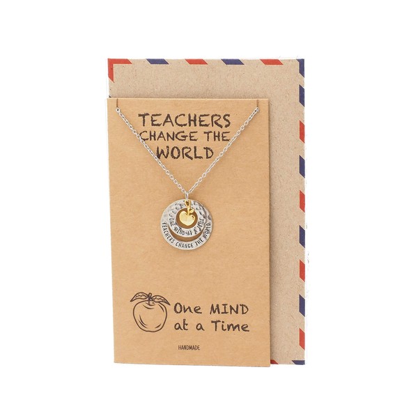 Quan Jewelry Teachers Gifts for Women Engraved Apple Pendant Necklace with 2 Circles Pendant, Best Appreciation Gifts with Inspirational Quote on Greeting Card, Metal, not-applicable