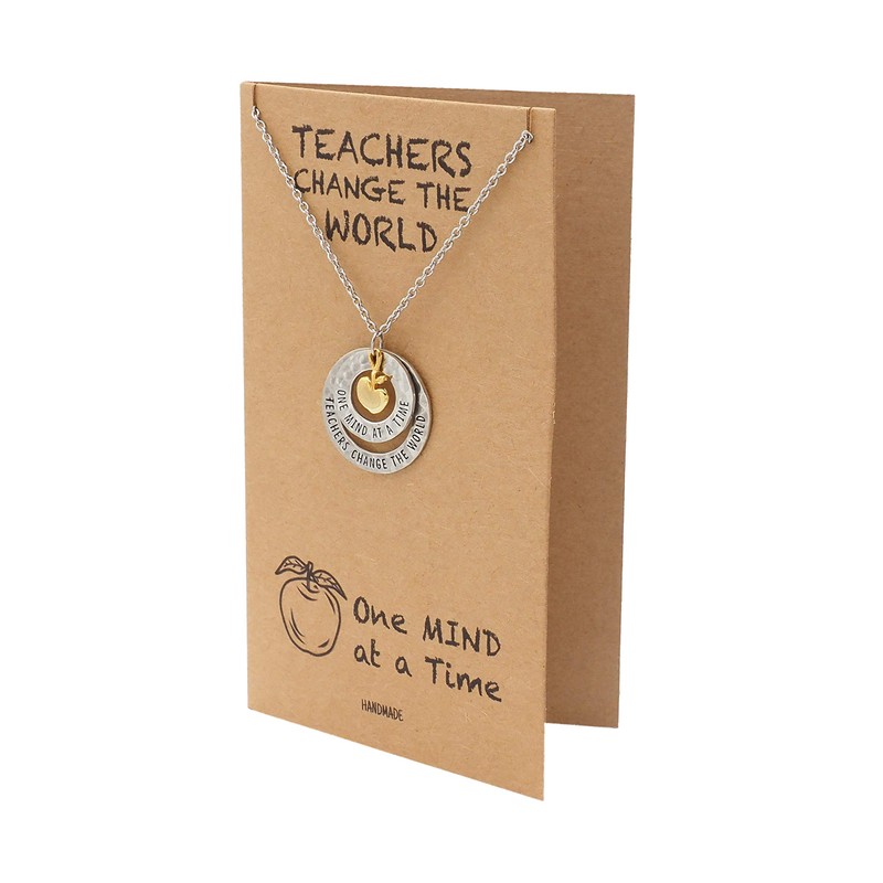 - Unique and handmade dainty minimalist design teacher apple necklace that comes with a quote card. A lovely jewelry to appreciate your teacher or co-teachers.