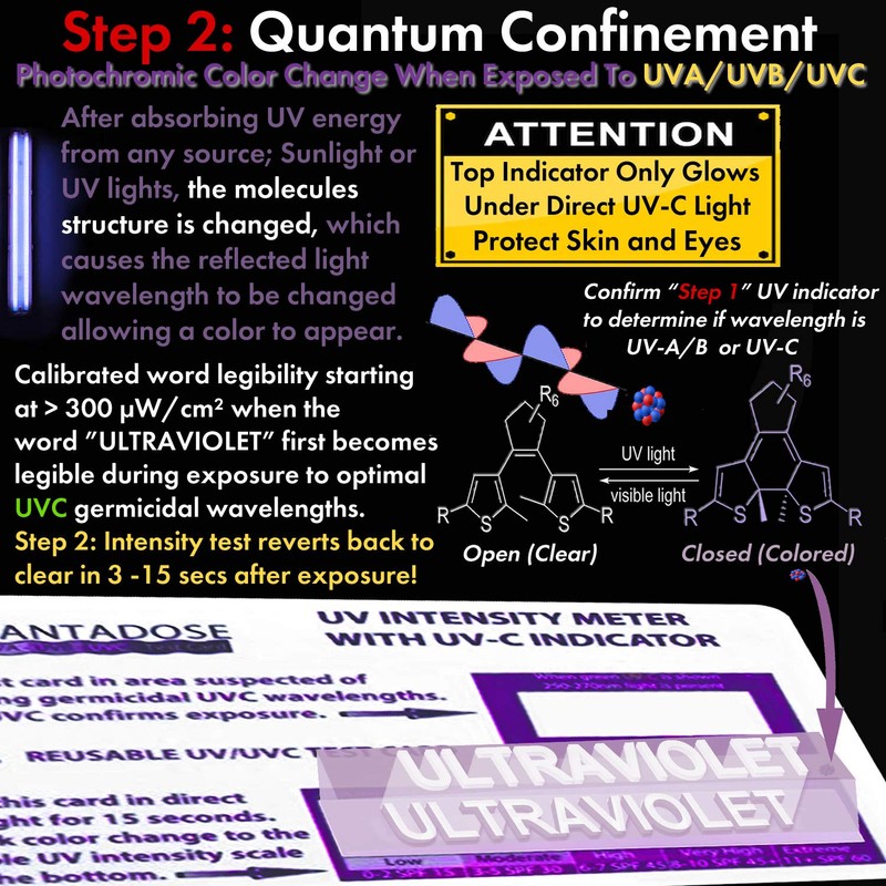 QuantaDose® UVC Light Test Card with UVC Light Wavelength Display and Photochromic UV Intensity Test