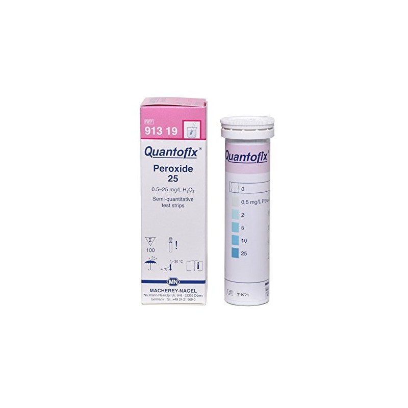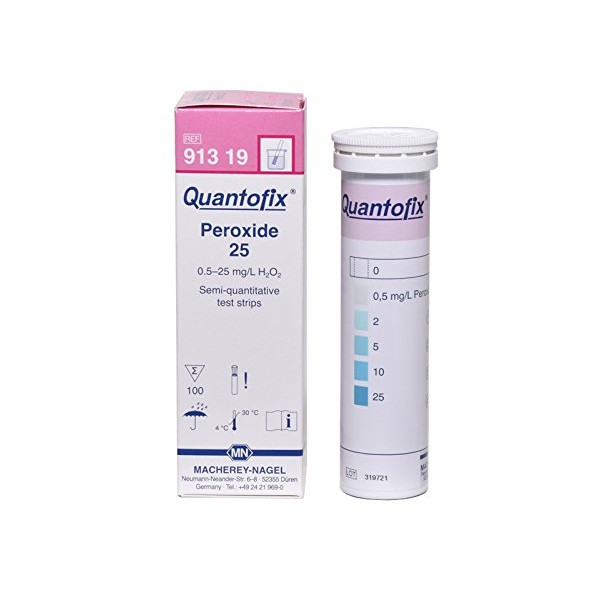 Quantofix 1138909 Hydrogen Peroxide Reagent Test Strips for testing 25 H2O2, Test Stick 6mm x 95mm (Pack of 100)