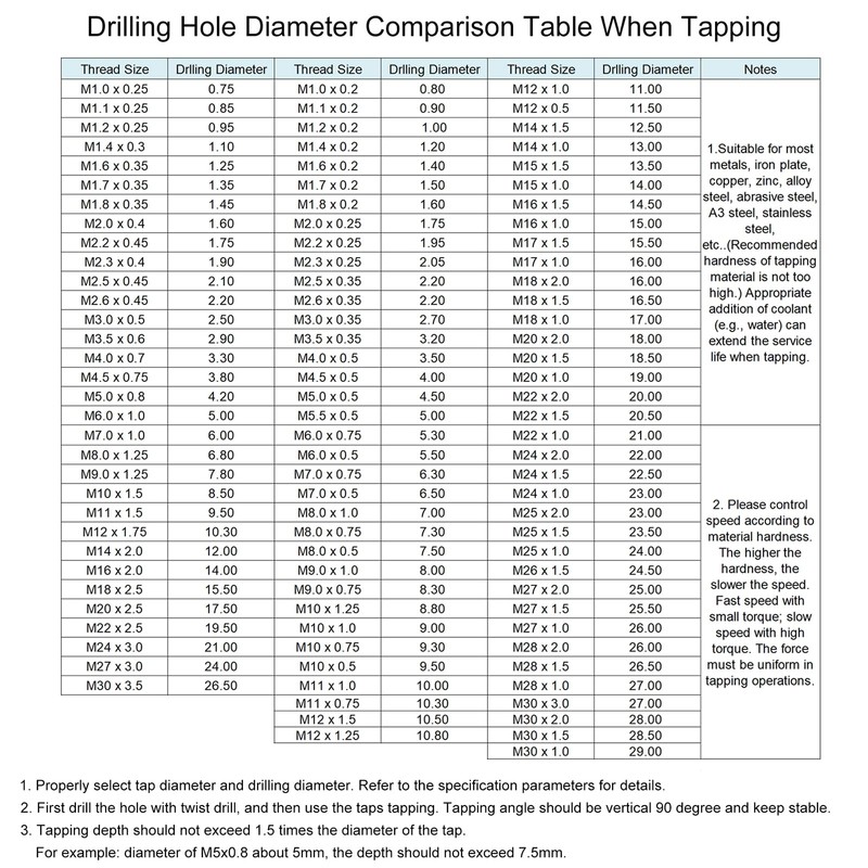 - Tips: It is recommended to use a machine tap with an overload protection function. The thread cutting angle should be 90 degrees vertical and stable, and the thread depth should not exceed 1.5 times the thread diameter.