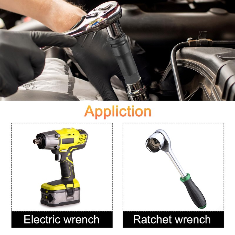 - Widely used - Used with ratchet wrenches, spanners, impact wrenches and sockets, it is widely used for removing and tightening bolts needed for professional automotive mechanical maintenance, daily repairs, equipment installation and other projects.