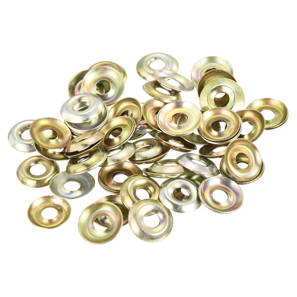 - [Cup Washer Countersunk] Size: 5mm x 14mm x 2mm/0.19" x 0.55" x 0.08" (Inner Diameter x Outer Diameter x Thickness); Material: Iron; Color: Yellow; Package Content: 100pcs x Cup Washer