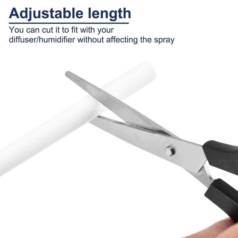 • Filterstäbchengröße: 10 x 230mm / 0,39" x 9,06"(D*L). Sie können es zuschneiden, um es bei Bedarf an Ihren Diffusor/Luftbefeuchter anzupassen. Stellen Sie sicher, dass Sie die Größe des Wasserdochts vor dem Kauf bestätigen