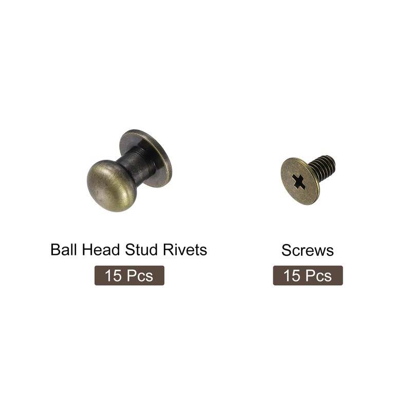- [Easy Installation] - With screw cap design, these ball head rivets are easy to install and remove. Punch a hole in the leather, then pass the screw through the hole, cover the button with the rivet and tighten the screws with a screwdriver.