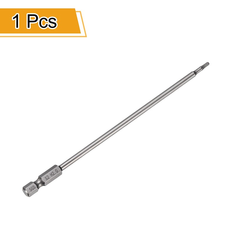 • Size - Metric flat hexagon head size: H2.0 (2 mm); hex shank size: 1/4 inch; total length: 200 mm (8 inch); hardness: HRC59-61 (the recognised stable hardness is about HRC60.). The H value indicates the size of the hexagon head. The larger the value, the larger the head, and the smaller the value, the smaller the head.