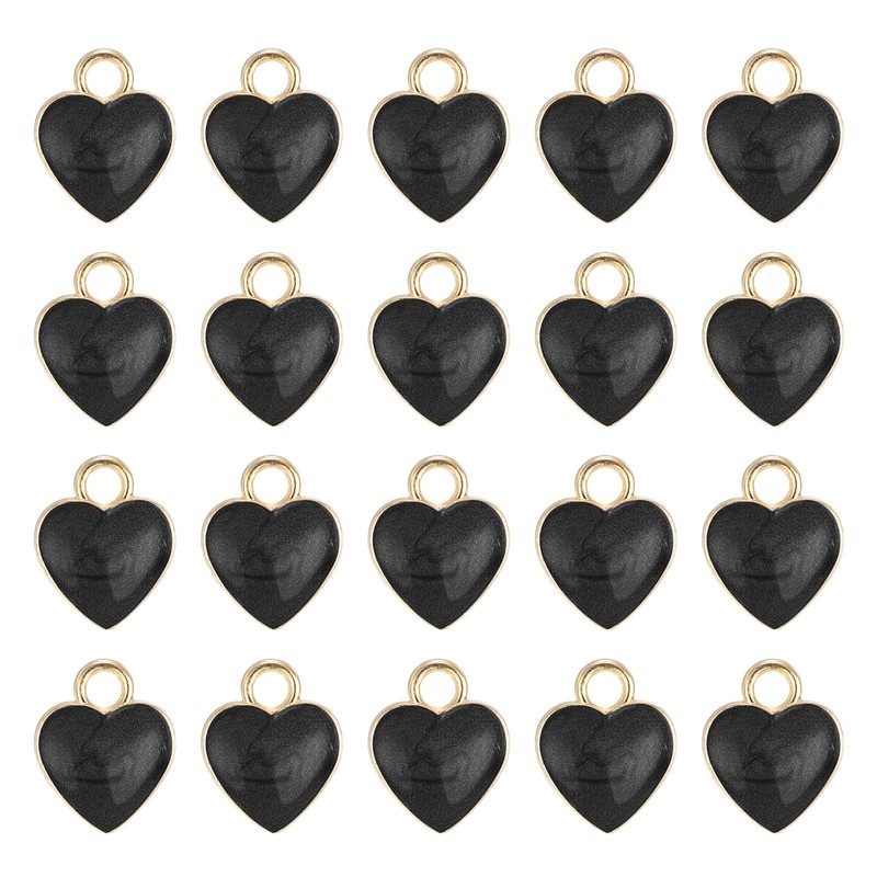QUARKZMAN 20 Stk. Herzanhänger, vergoldeter Anhänger für DIY Handy-Zubehör Schlüsselanhänger Basteln, 12x10mm, Schwarz