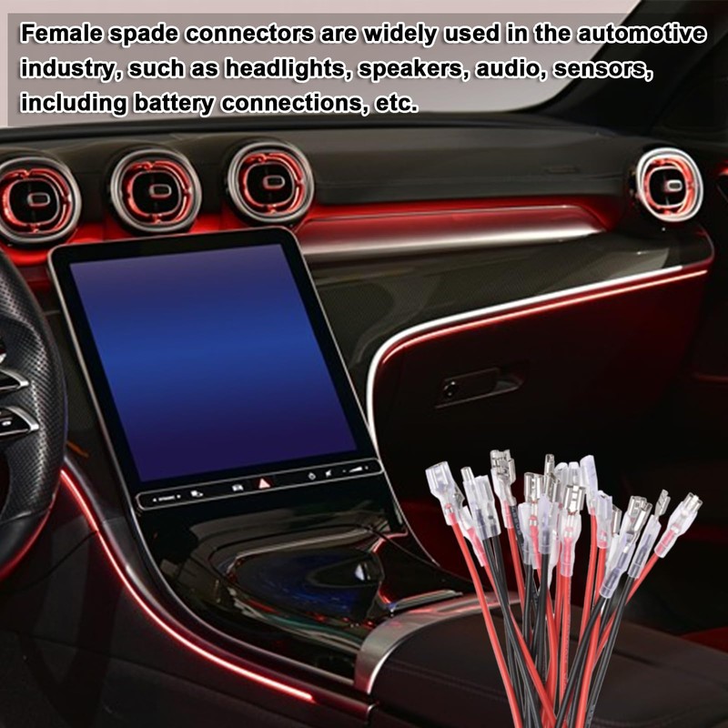 The female spade connectors are simple in design and allow easy and reliable connections without soldering, suitable for quick repairs and renovations.