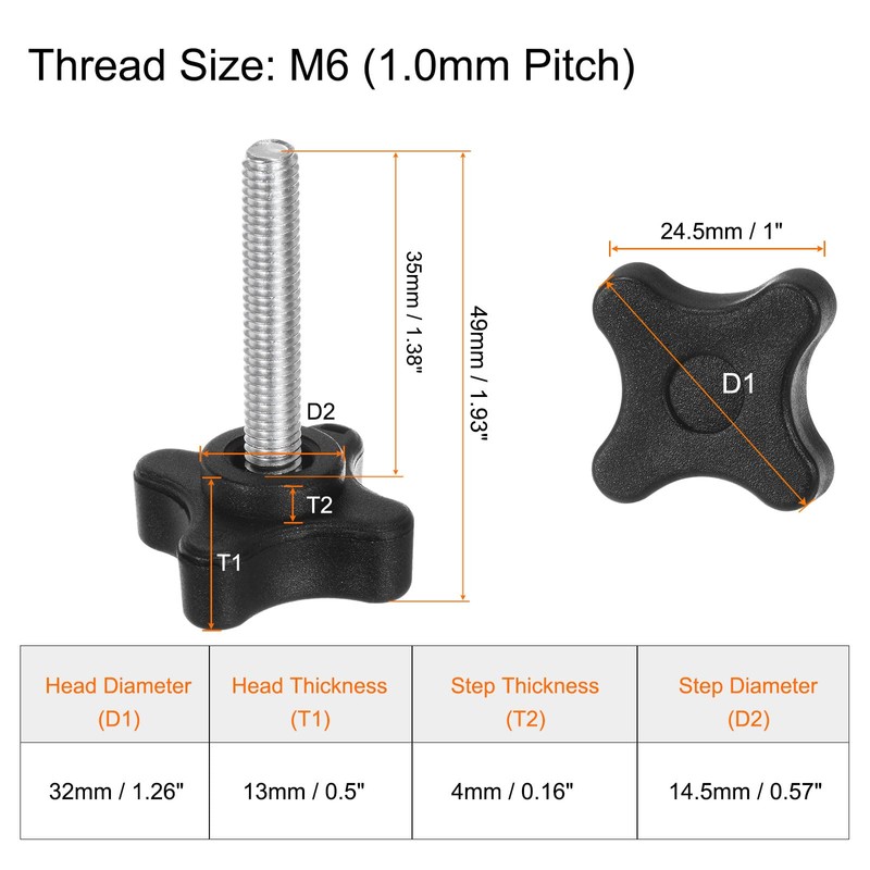 - Size - Thread Size: M6 (1.0mm Pitch); Threaded Screw Length:35mm; Head Size:32mm x 24.5mm x 13mm/1.26" x 0.94" x 0.51"(L*W*T);Step Size:14.5mm x 4mm/0.57" x 0.16"(D*T);Overall Length:49mm/1.93"; Button Sty