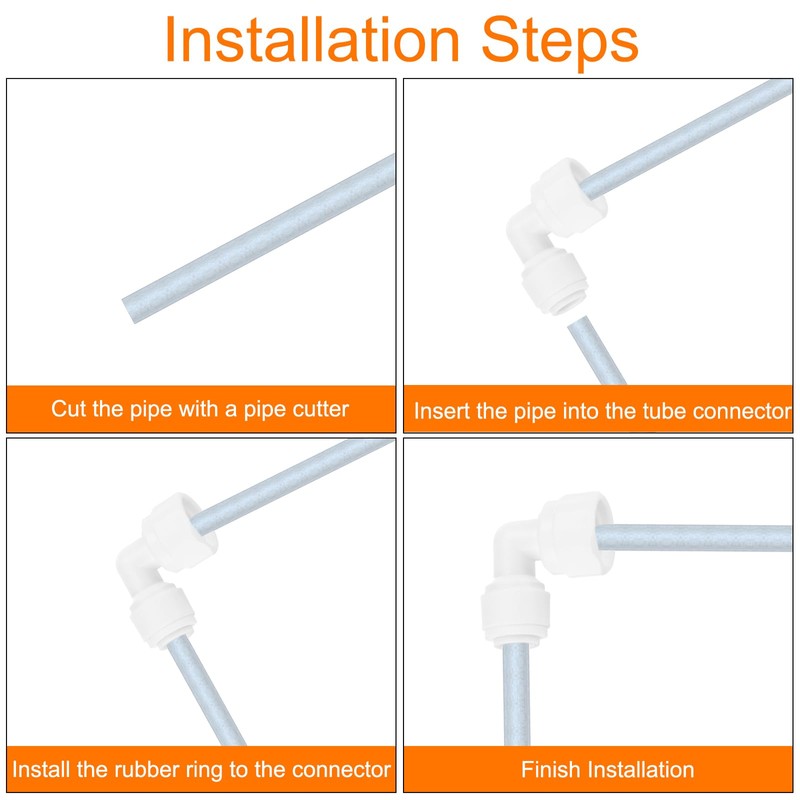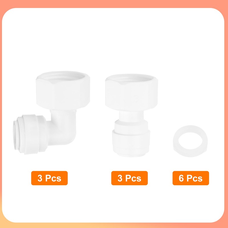Package Content : 3pcs x Straight RO Pipe Connector & 3pcs x Elbow Pipe Connector & 6pcs x Rubber Rings