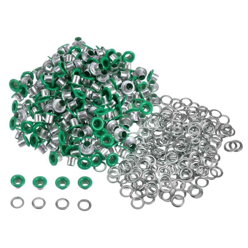 QUARKZMAN 300 Pieces Metal Grommets 3mm 1/8" Hole Tiny Grommets with Washers for Shoes Clothes Belt Pendant Bag Fabric Leather DIY Project Green