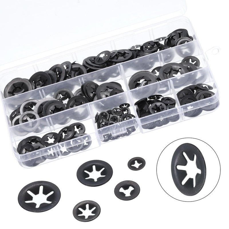 - Größe: 320Stk von 7 Größen Sicherungsscheiben M3x9mm(60Stk), M4x12mm(60Stk), M5x14mm(50Stk), M6x16mm(50Stk), M8x18mm(50Stk), M10x20mm(30Stk), M12x25mm(20Stk).