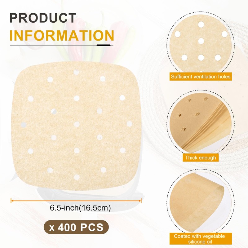 Das perforierte Pergamentfutter ist mit ausreichend Belüftungslöchern versehen, um die Dampfzirkulation im Dämpfkorb oder Air Fryer zu beschleunigen, damit die Lebensmittel gleichmäßig erhitzt werden. Dieses Bambusdämpfpapier ist Einweg und ersetzt das traditionelle Dämpftuch, was die Unannehmlichkeiten nach dem Gebrauch reduziert.