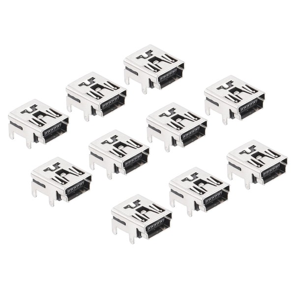 QUARKZMAN 5 Pins Mini USB Type B Female x 10pcs PCB Mounting Solder Connector for USB CD Computer [Silver Tone,Black]