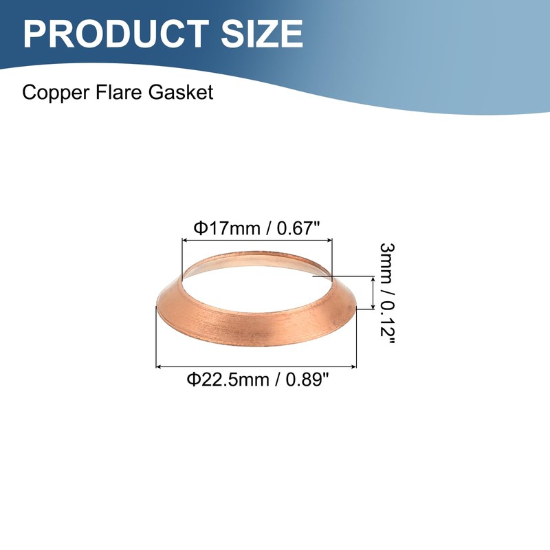 - [Specifications]: copper flange gasket, 3/4 inch tube size, suitable for 19.05 mm copper pipe, inner diameter: 17 mm/0.67 inch, outer diameter: 22.5 mm/0.89 inch, product content: 8 pieces copper flange gasket