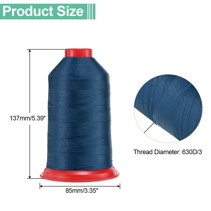 QUARKZMAN 962 Yards Bonded Nylon Sewing Thread Size 630D/3 Sewing Heavy Nylon Upholstery Thread Outdoor Thread for Leather Jeans and Weaving Machine DIY Navy Blue
