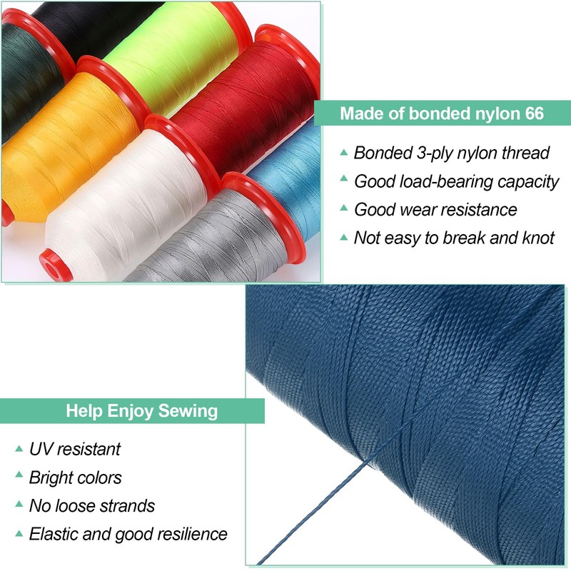 - STRONG AND DURABLE The sewing thread is made of sturdy and reliable bonded nylon 66. The 3-ply nylon thread binding has a good load capacity and is not easy to break; the nylon fibre has good abrasion resistance and strong elasticity, is not easy to deform, has good wrinkle resistance and can naturally return to its original shape after stretching; dyeing is uniform and firm, not easy to fade