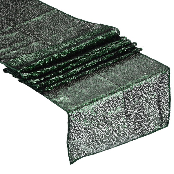 QUARKZMAN Dark Green Table Runner 71 x 12 Inches Long Shiny Sequin Table Runner for Event Party Birthday Party Weddings Christmas
