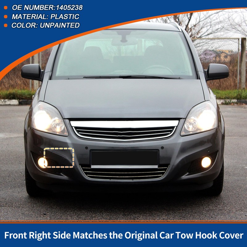 QUARKZMAN Front Right Car Bumper Tow Hook Cover Tow Cover Cap Unpainted Fits Vauxhall Zafira B 2008 No.1405238 - Pack of 1