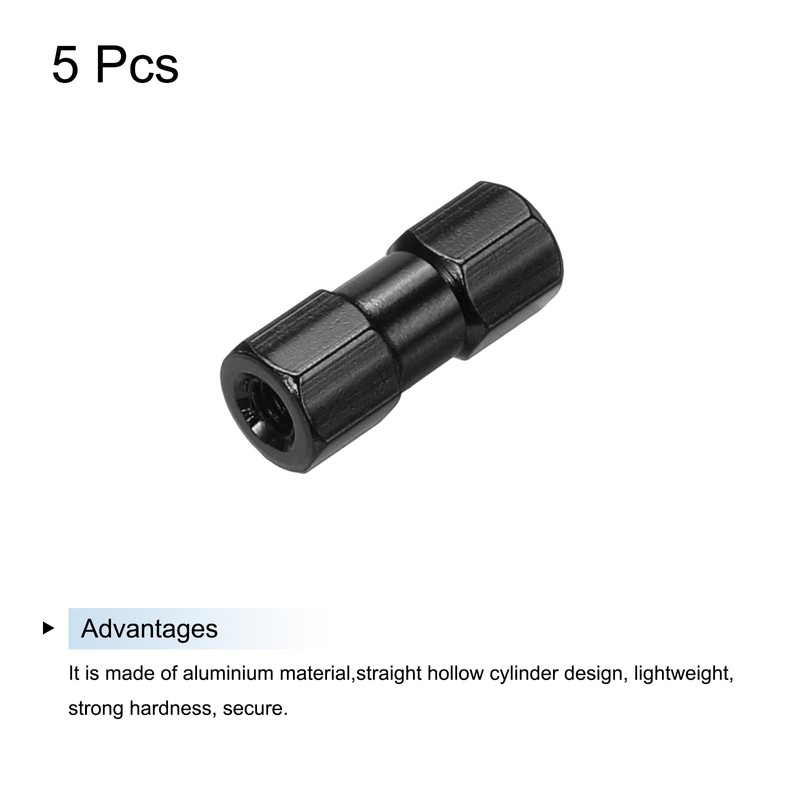 - Aluminium spacer, hexagonal spacer, size: internal thread M3; total length: 15 mm; outer diameter of the column: 6 mm; colour: black; material: aluminium alloy; package content: 5 pieces