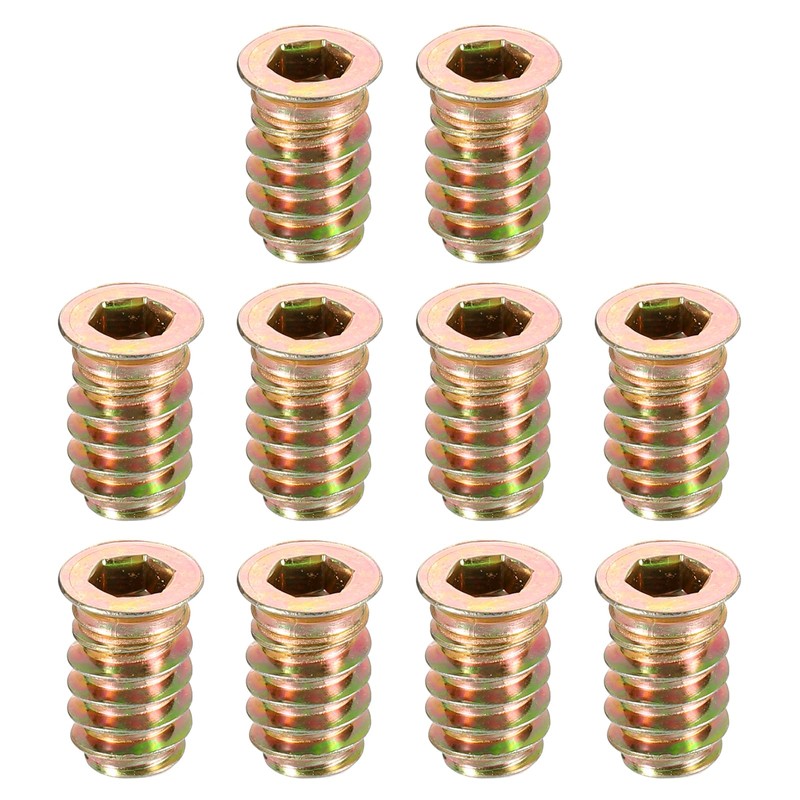- [Material] Threaded inserts for wood are made of carbon steel, color galvanized surface treatment, high hardness and good wear resistance, standard hex socket, smooth.