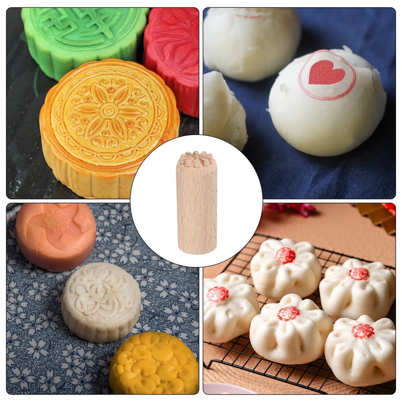 QUARKZMAN Holzrunde Lebensmittelstempel 0,8" Durchmesser 2" Länge Holzblockdruckstempel mit floralem Muster für Kekse, Kuchen und Desserts