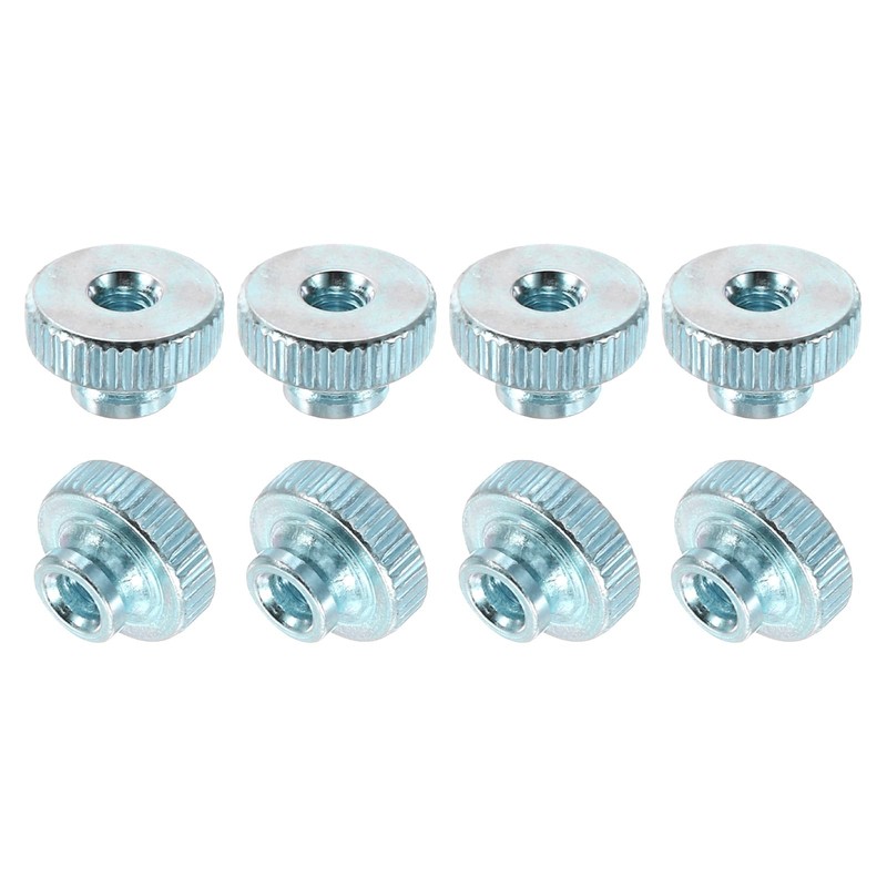 - [Material] Our knurled thumb nuts are made of carbon steel and are surface nickel-plated. They are high strength, durable, wear-resistant, robust and not easy to rust or fade. With a flat head and a knurled body that ensure a long service life.
