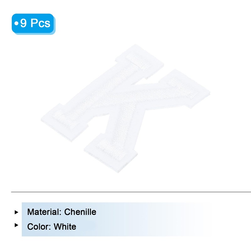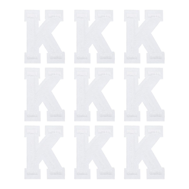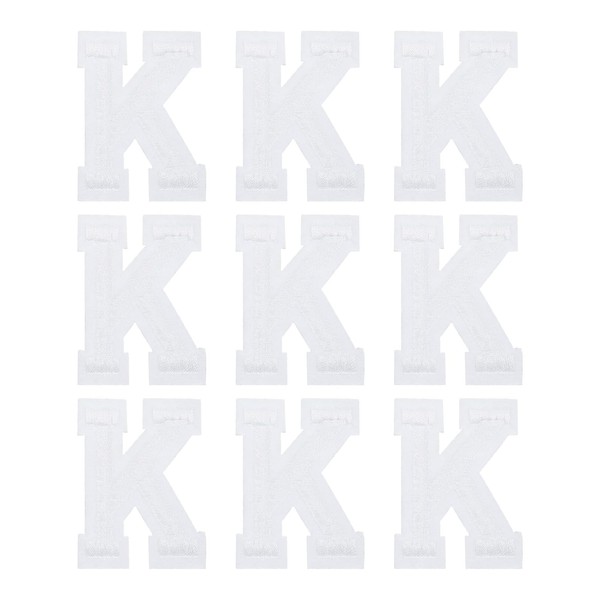 QUARKZMAN Letter K White Iron On Patch Sew On Embroidered Appliques 4.7cm/1.85" Hot Melt Gluing Process Pack of 9