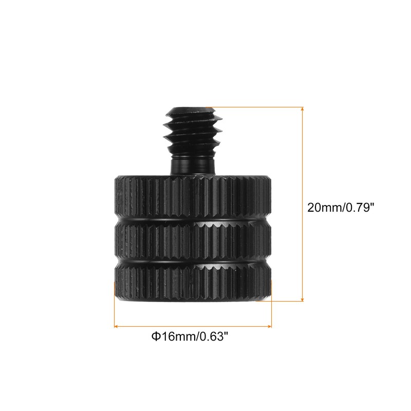 - Thread adapter we provide here is in the size of: Material: Aluminum Alloy; Color: Black; Body Height: 13mm/0.51"; Thread: Female 1/4" to Male 1/4"; Overall Size: 16mm x 20mm/0.63" x 0.79" (D*H)