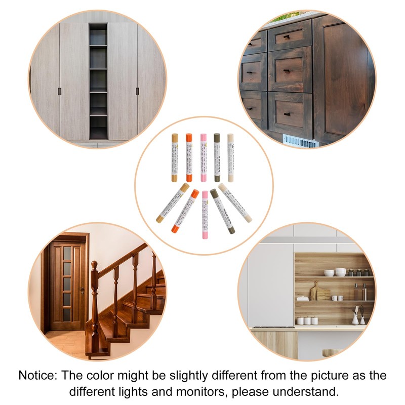 3. Unsere Holzfüllstifte eignen sich hervorragend zum Auffrischen von Holzmöbeln, Holzbodennuten, Tischen, Schränken, Nuten, Schrammen, Betten, Böden, Stuhlbeinen, Türzargen, Bilderrahmen, Holzinstrumenten, Holztreppen oder anderen Möbeln.