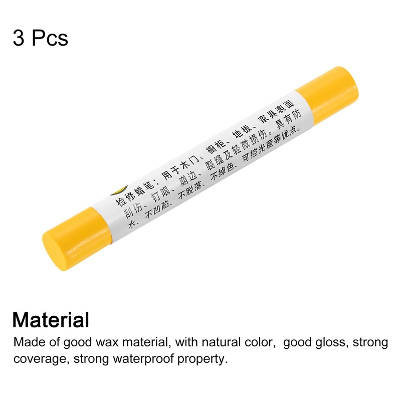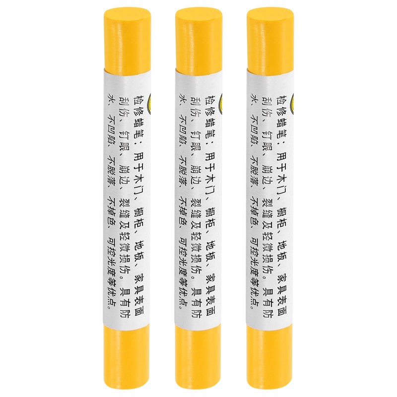 QUARKZMAN Möbelreparaturkreiden, 3 Stück - Holzwachsfüllstift, Möbelmarker zum Auffrischen - für Kratzer Löcher Tische Schreibtische Holzböden Abdeckungen, Mittelgelb