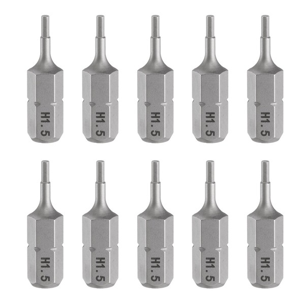 QUARKZMAN Pack of 10 H1.5 Hexagonal Screwdriver Bit 1/4 Inch Hex Shank 25 mm/1 Inch Length Magnetic Hex Head Hex Bits S2 Steel Bit Set for Electric Screwdrivers Cordless Screwdriver