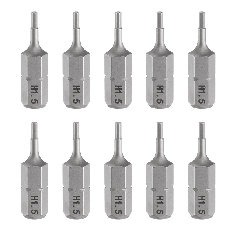 - Size - H1.5; Total length: 25 mm/1 inch; Shank: 6.35 mm/1/4 inch hex shank; hexagonal head drill bit specially designed for effortless screwing of screws into wood, metal and other materials. Can tighten screws precisely without damaging screws and screwdriver bits