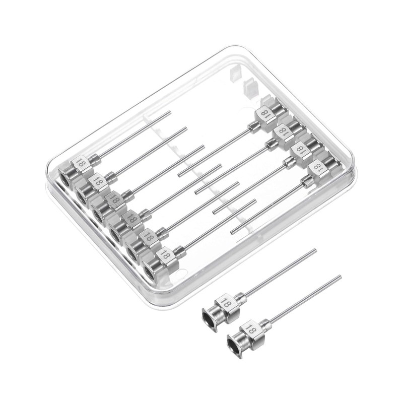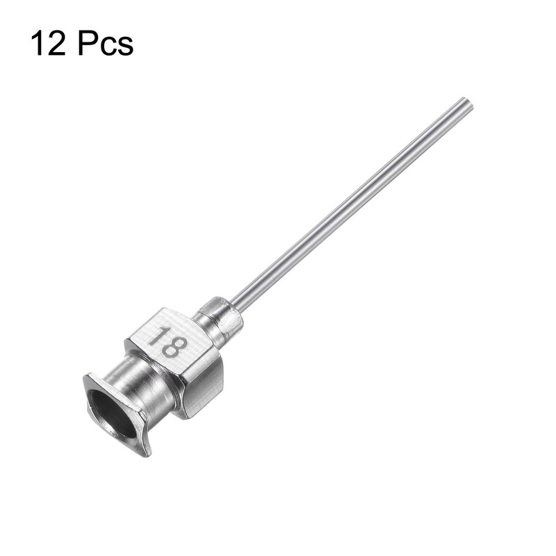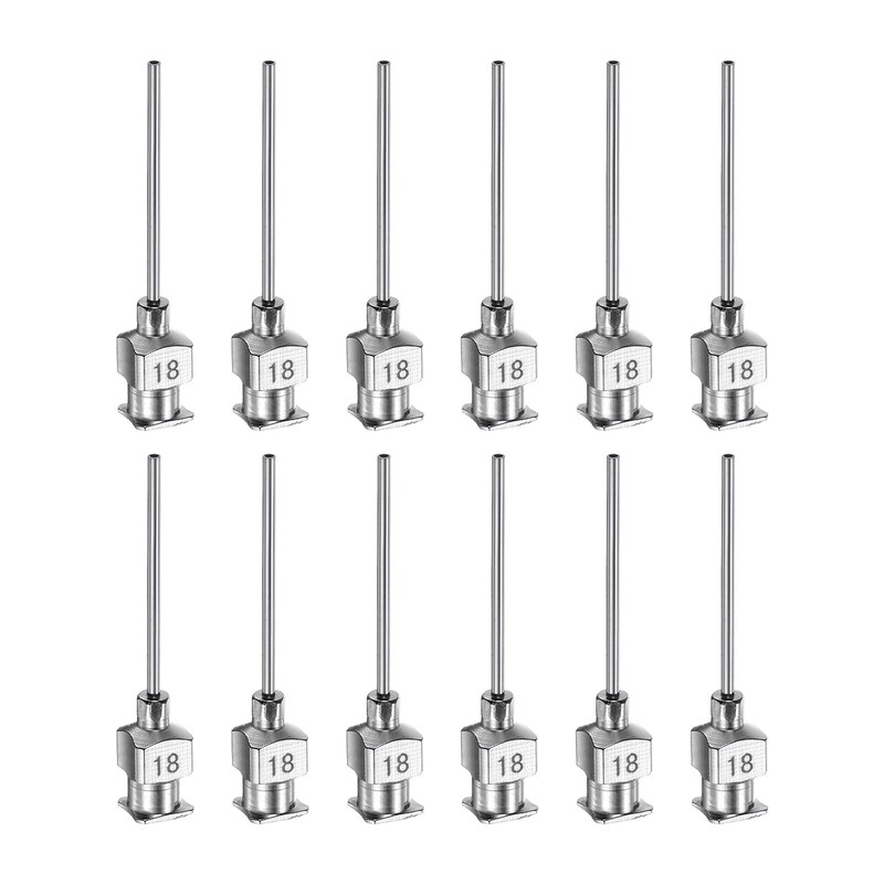 QUARKZMAN Pack of 12 18 Gauge Stainless Steel Dosing Cannulas, 1 Inch Metal Glue Needle Tube with Blunt Tip and Luer Lock for Thick Materials, Ink, Glue, Lab Insert