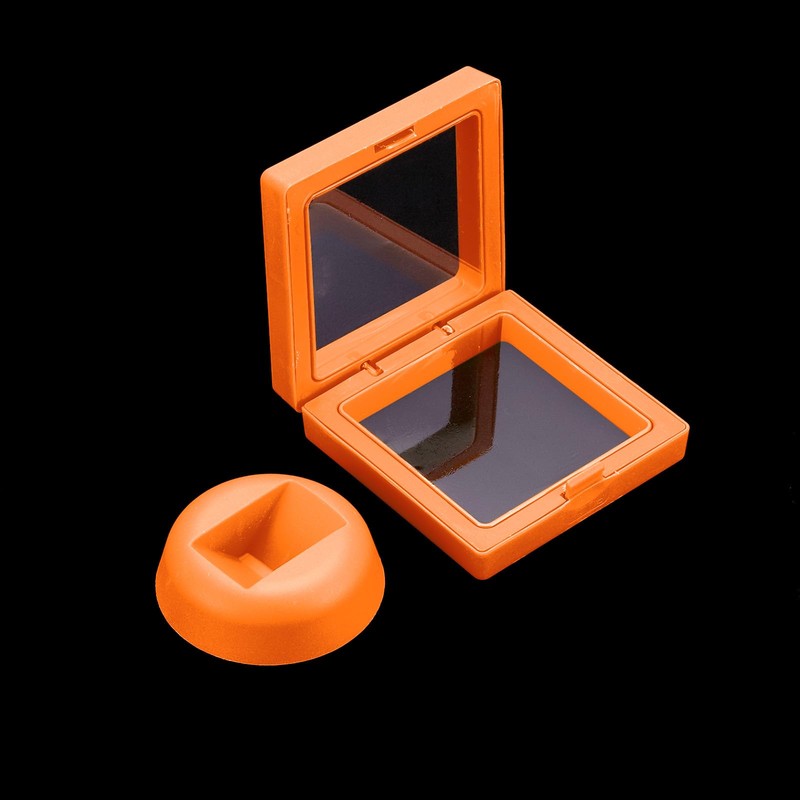 QUARKZMAN Pack of 12 3D Floating Display Housing 2.76 x 2.76 x 0.8 Floating Frame Display Holder Stand Transparent PE Jewellery Storage Box Orange