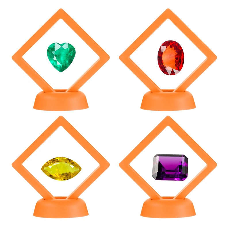 - Package contents: you will receive 12 floating display cases and stands. Frame Size: 2.76"L x 2.76"W x 0.8"H; Screen Size: 2.1"L x 2.1"W. Colour: Orange