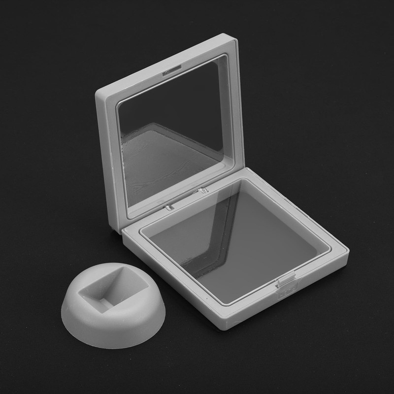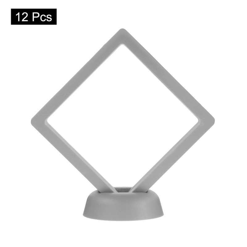 - Package contents: you will receive 12 floating display cases and stands. Frame size: 3.54"L x 3.54"W x 0.8"H; Screen Size: 2.9"L x 2.9"W. Colour: Grey